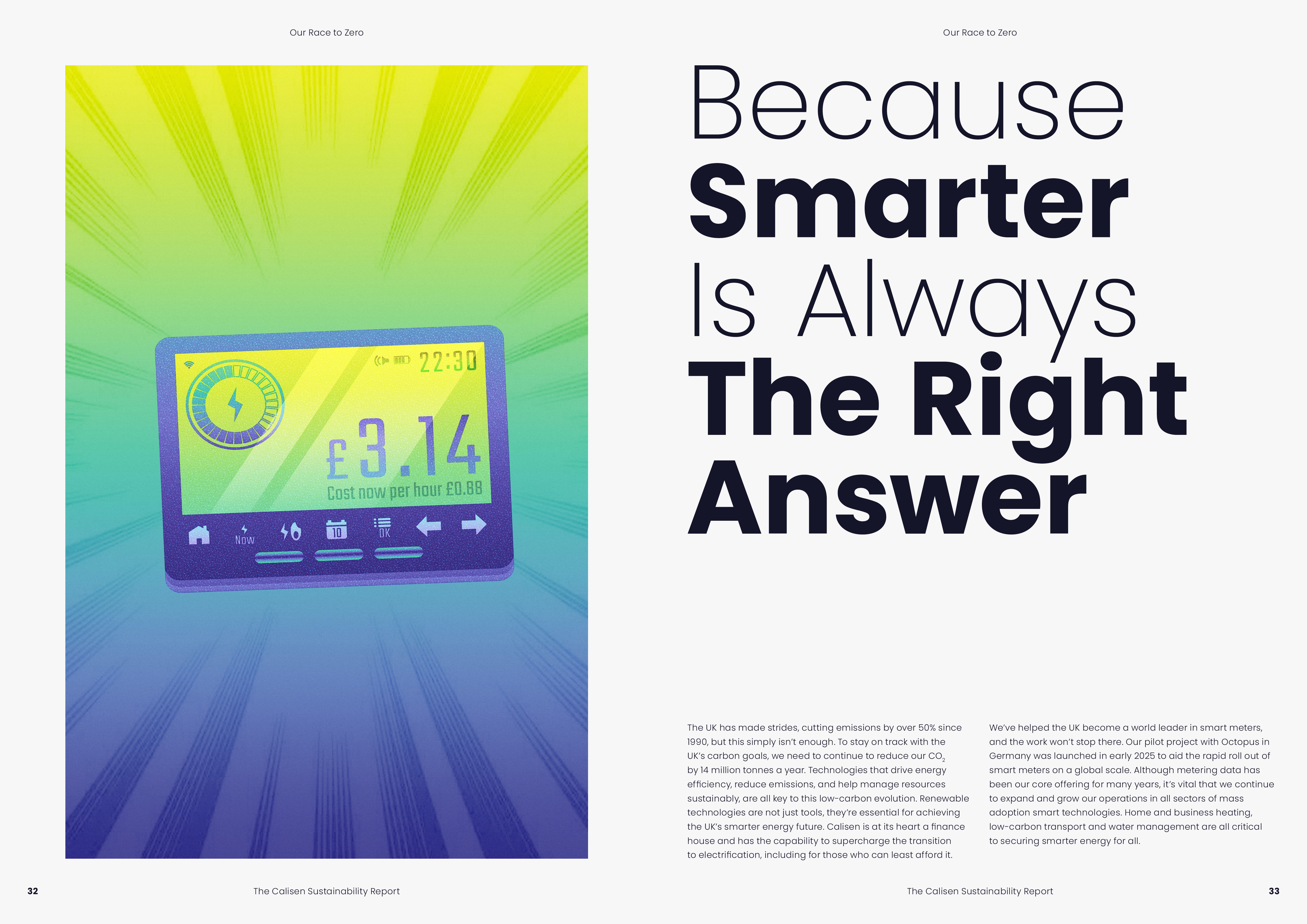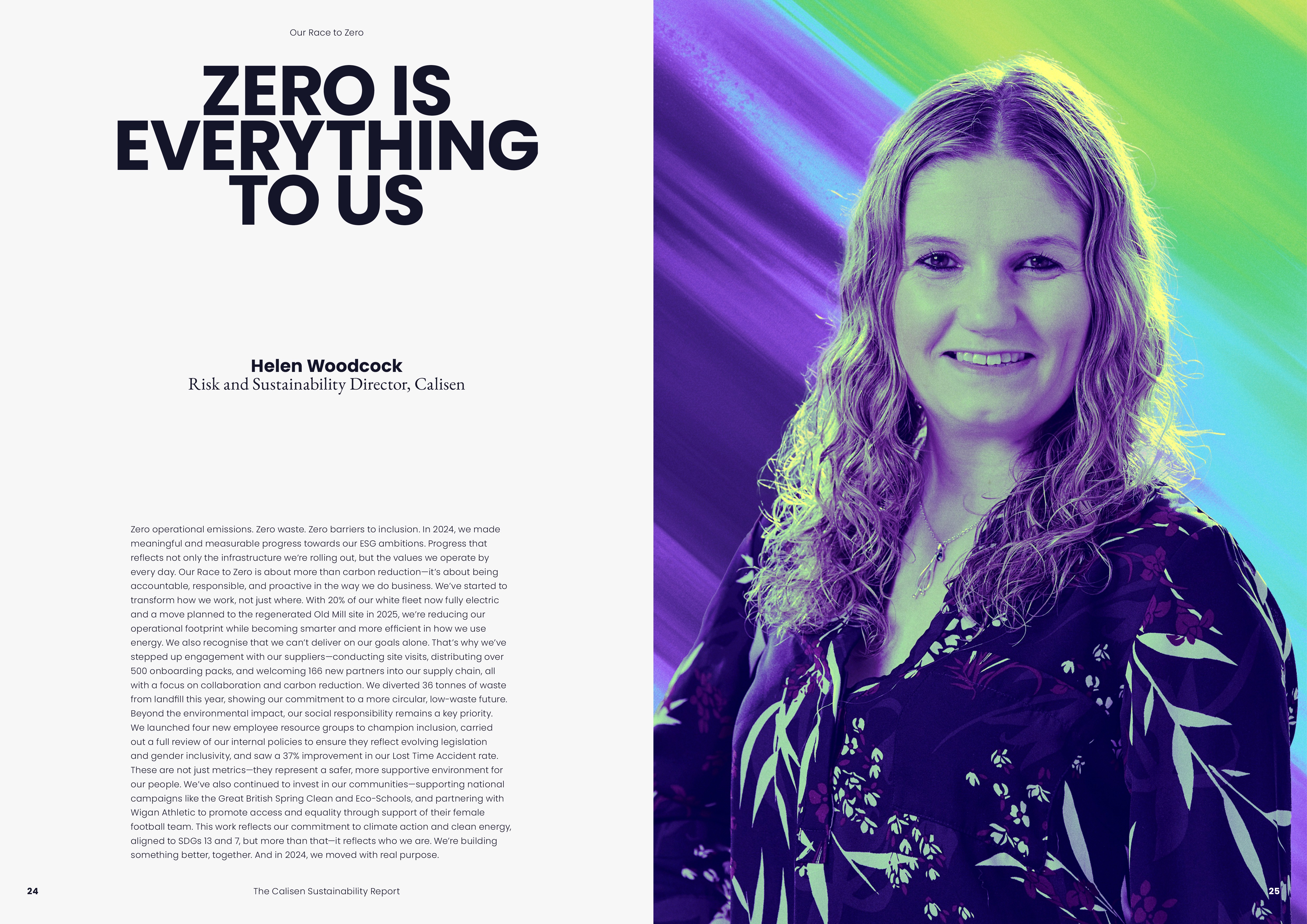 How do you turn a load of boring stats and statements into an inspirational rally cry? In a highly collaborative partnership with Calisen and our friends at Platform195, Rebel→Future developed Our Race To Zero. The corporate sustainability report elevated. Yes, we celebrate Calisen's considerable impact on the UK's transition to smarter energy infrastructure with impressive stats and statements from the leadership team. But we also deployed razor sharp strategy, creative, design and messaging to infuse the report with impactful, future focused storytelling. The result? A document that leaves a lasting impact on the energy industry and makes every one of Calisen's 3000+ employees (the Zero Heroes) feel proud of their contribution to The Race To Zero.